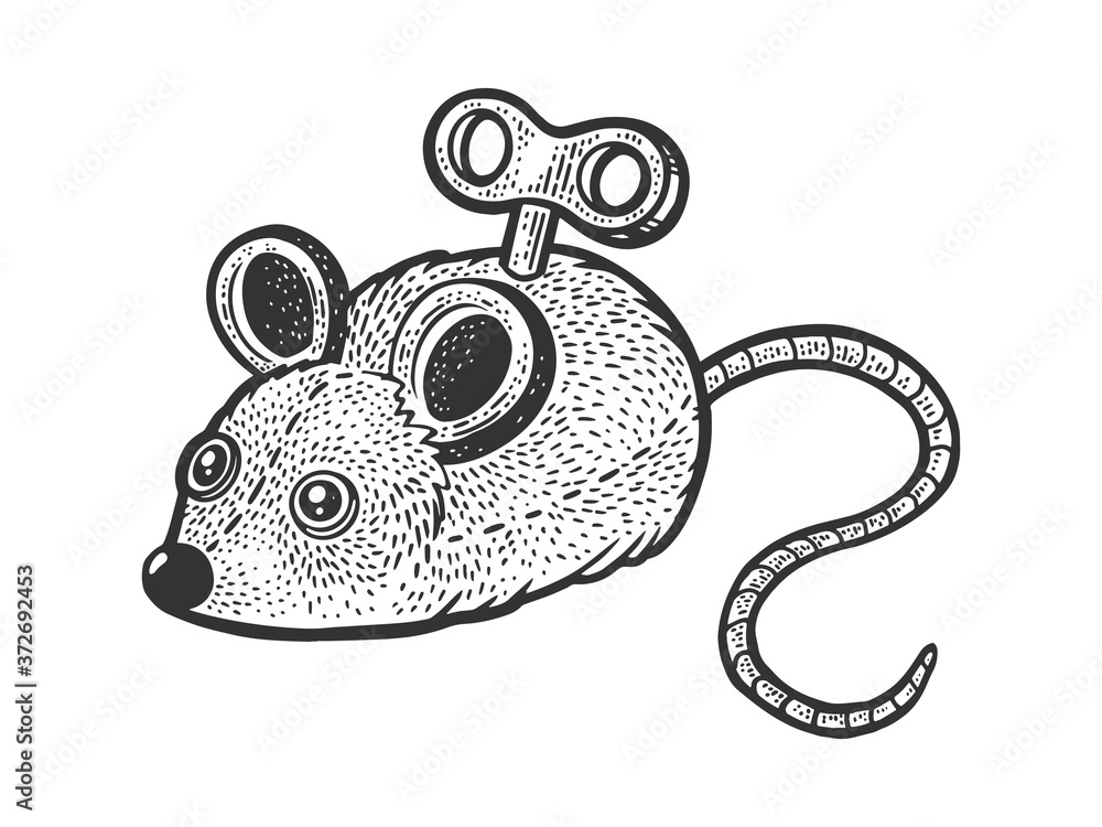 Clockwork mouse mechanical toy for cat sketch engraving vector