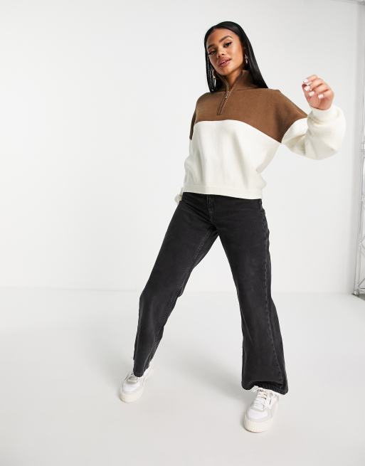 NA KD x Rianne Meijer colourblock zip neck jumper in brown