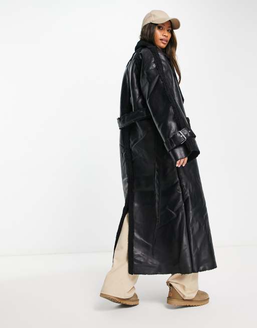 NA KD x Rianne Meijer belted coat with faux sherling in black
