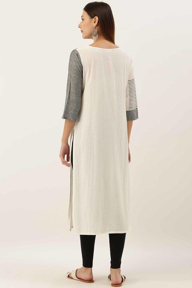 Melange kurtis clearance, Buy VARANGA Grey Melange Women s Grey And Off White Woven Design clearance