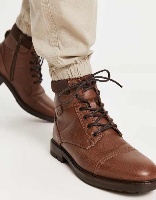 River Island Boots Mens Brown Leather Lace Up Boots Increase CDC