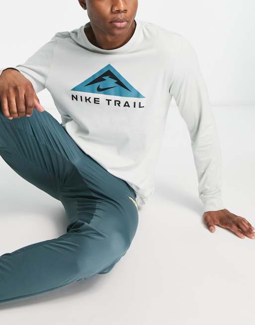 Mens dri fit long sleeve t shirts clearance, Nike Running Trail Dri Fit graphic long sleeve t shirt in silver clearance
