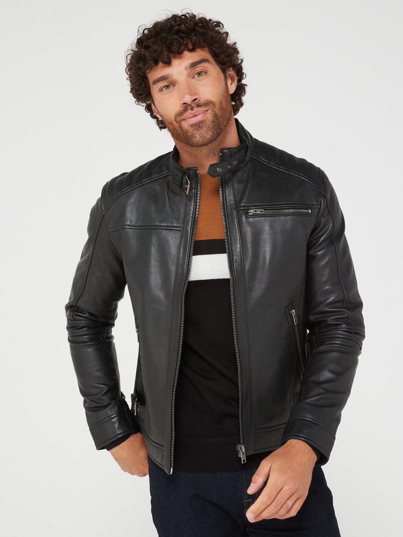 Mens leather racer jacket clearance, Leather Racer Jacket clearance