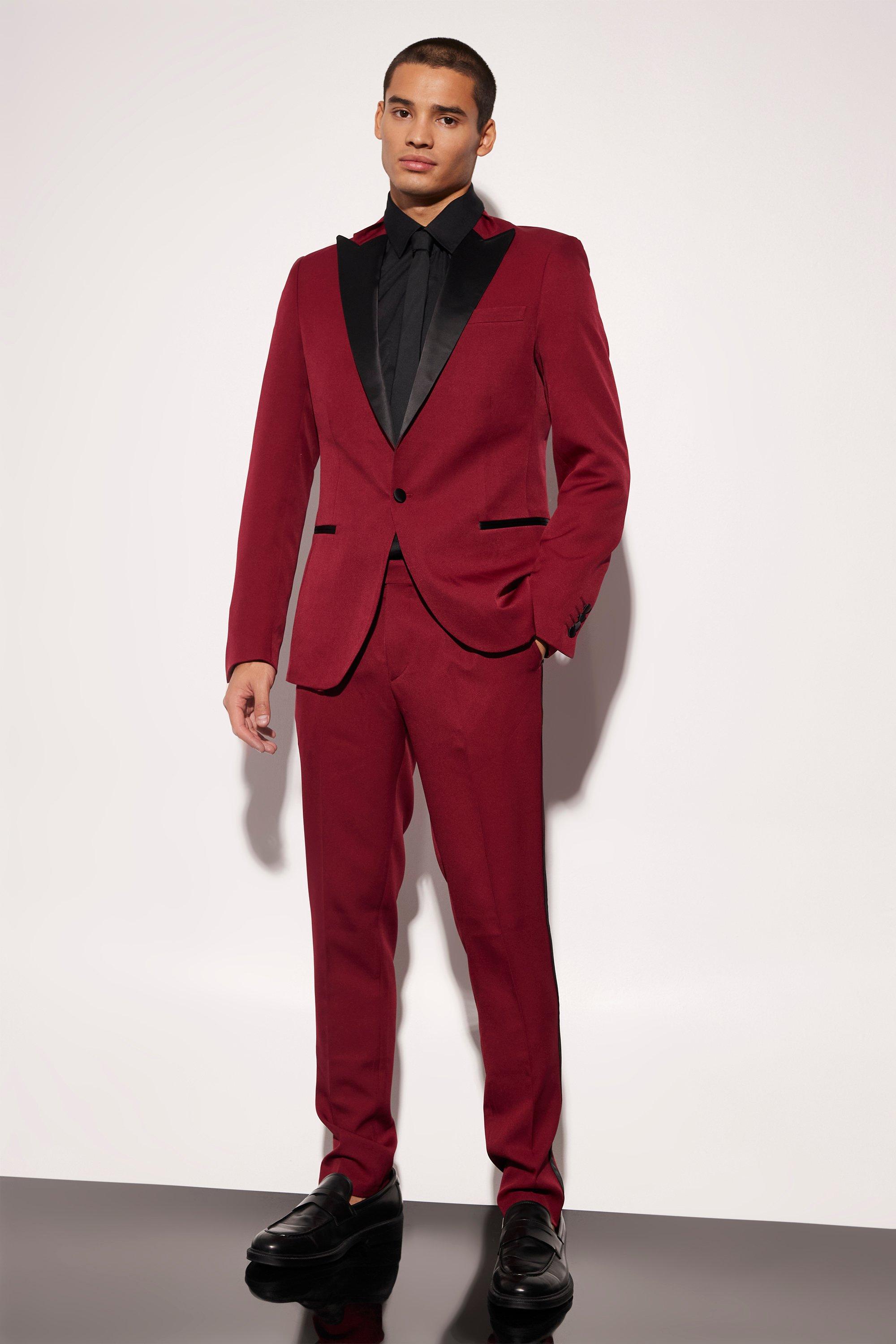 Mens Suits Red Dinner Party Men Black Shawl Lapel Slim Fit One