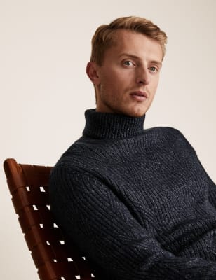 Chunky Cable Roll Neck Jumper With Wool M S Collection M S