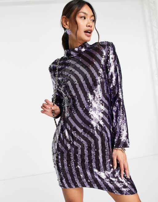 Other Stories stripe sequin mini dress in purple ASOS
