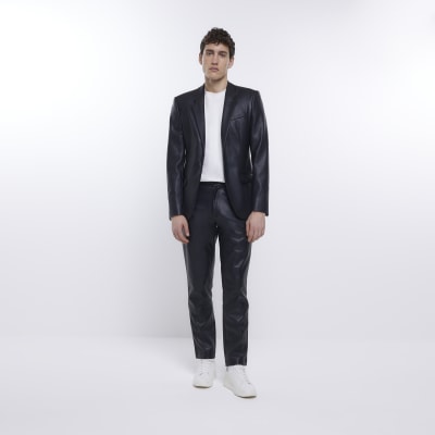 Black slim fit faux leather suit jacket River Island