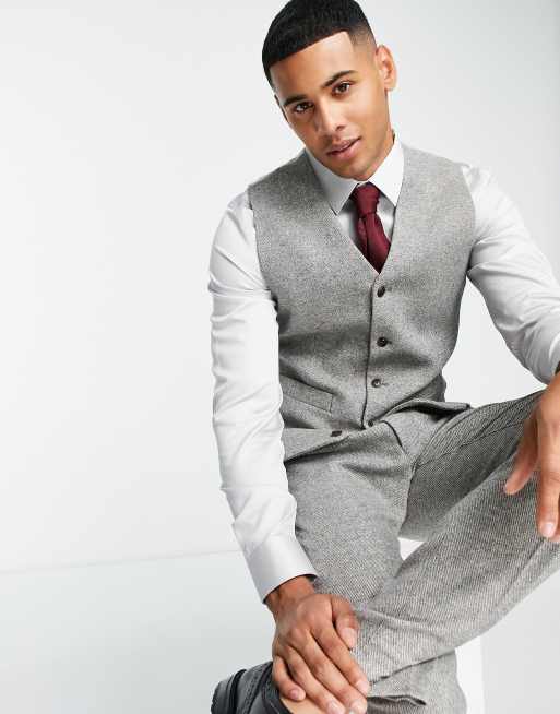 Mens waistcoat asos clearance, ASOS DESIGN slim wool mix waistcoat in mushroom brown texture clearance