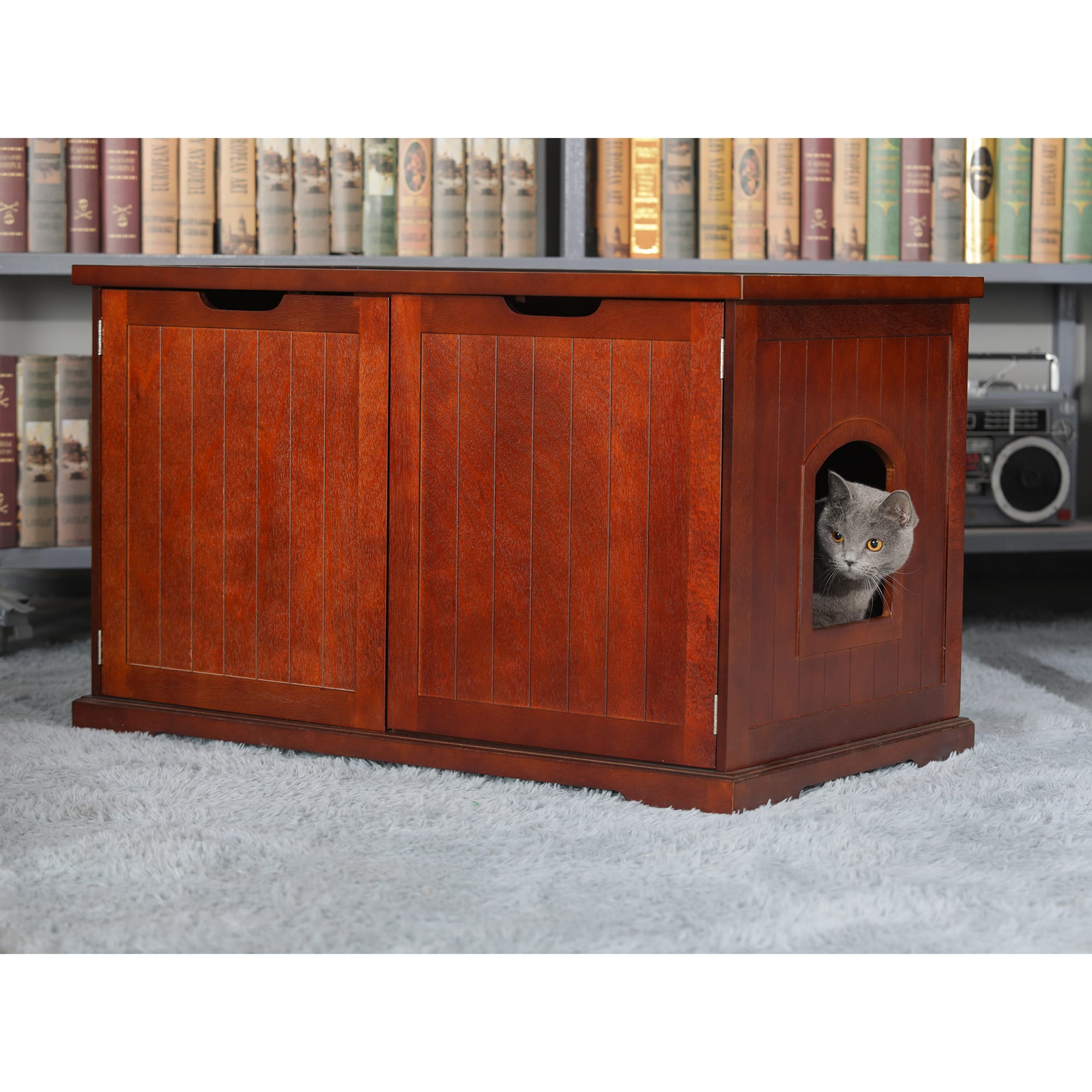 Merry Products Pet Cat Litter Box Washroom Storage Bench Box With