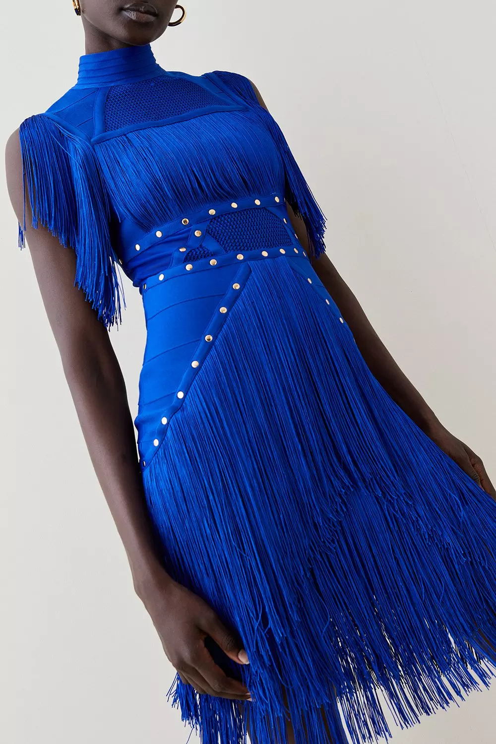 Studded Fringe Mesh Insert Bandage Mini Dress Karen Millen
