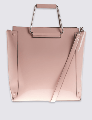 Faux Leather Metal Handle Tote Bag M S Collection M S