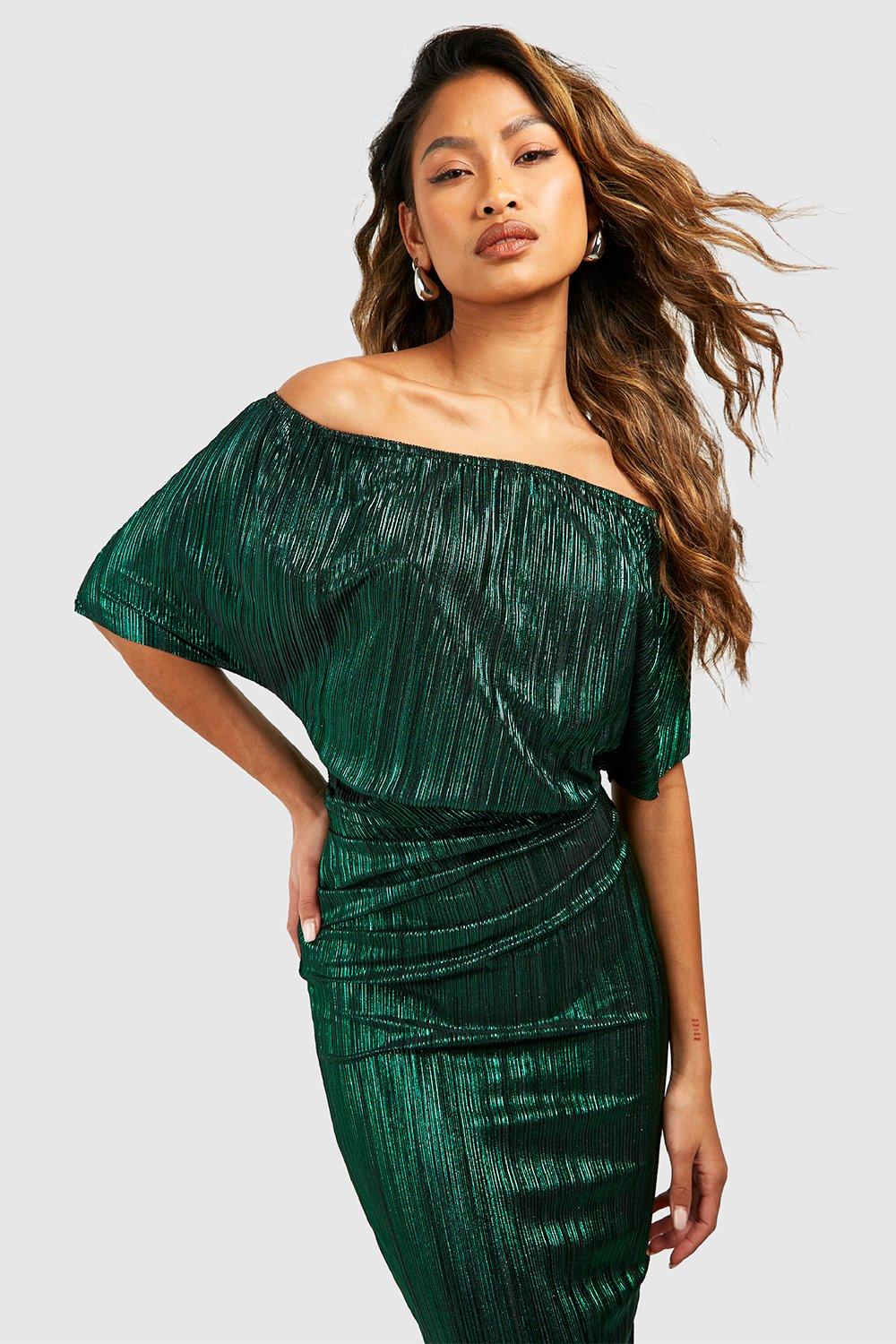 Metallic bardot dress clearance, Metallic Lace Bardot Neck Midi Bridesmaid Dress Aisle Society clearance