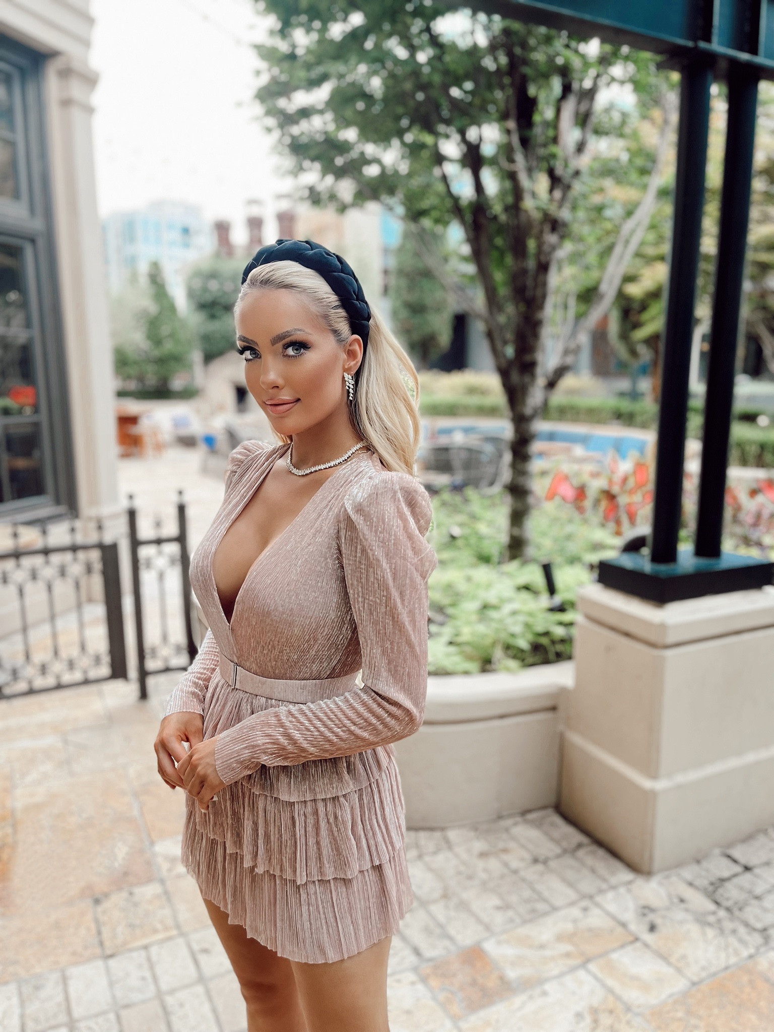Metallic knit rose gold tie wrap dress clearance, X REVOLVE Carry Mini Dress in Blush curated on LTK clearance