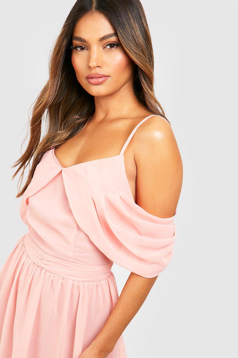 Midi dress boohoo clearance, Chiffon Cold Shoulder Draped Midi Dress boohoo clearance