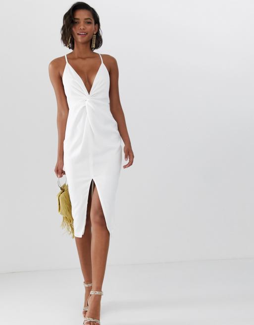 ASOS DESIGN midi strappy cami dress with knot front plunge in