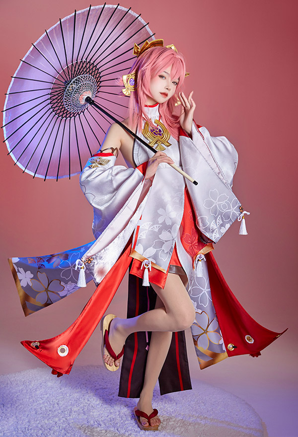 Yae Miko Costume Genshin Impact Cosplay Kimono Dress Set Top