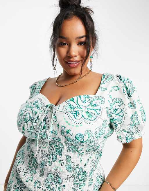 Milkmaid dress plus size clearance, Plus Size Puff Sleeve Mini Day Dress in Green Chi Chi London clearance