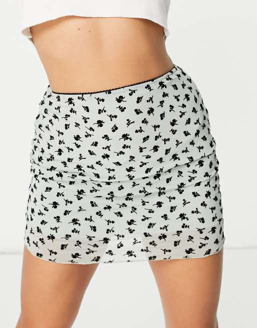 Mini floral bodycon skirt clearance, ASOS DESIGN floral mesh mini skirt in green and black ASOS clearance