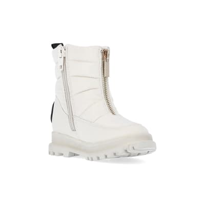 Mini Girls Cream Quilted Zip Front Snow Boots River Island
