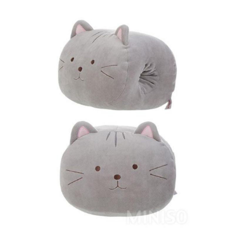 Miniso life plush cat clearance, Authentic Miniso Life Grey Cat Plush Marshmallow Soft Nap Pillow clearance