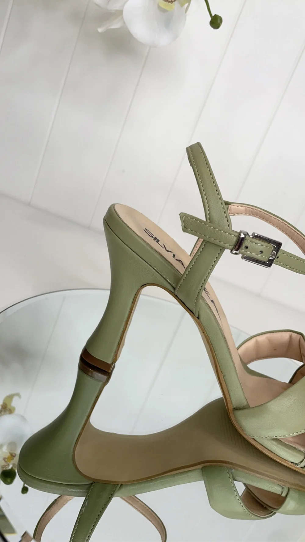 SS22007 Genuine leather strappy block heel sandals in mint pink