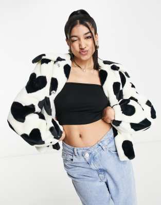 Miss selfridge faux fur jacket clearance, Miss Selfridge faux fur jacket in heart print Multi clearance