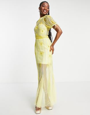 Miss Selfridge Premium embellished floral puff sleeve midi dress in