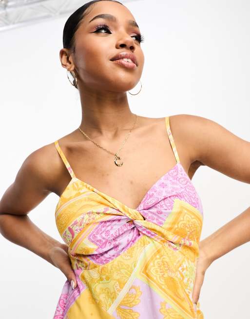 Miss Selfridge twist front midi slip dress in multicolour scarf print