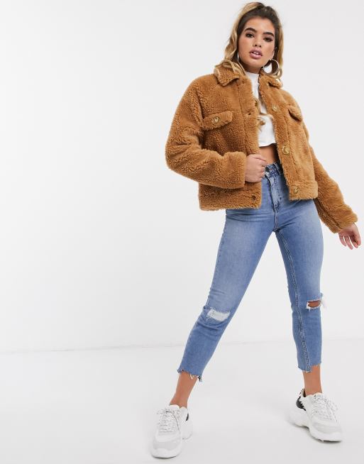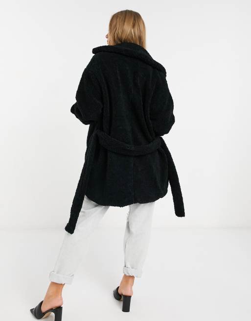 Missguided borg trucker jacket clearance, Missguided longline borg trucker shacket in black clearance