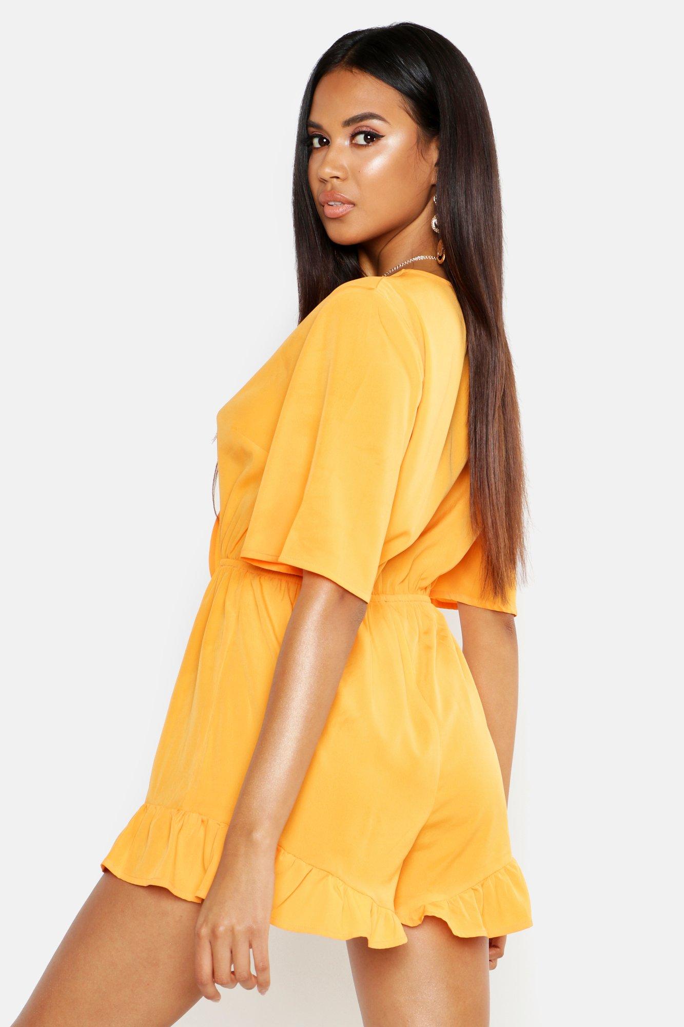 Missguided curve knot front dress clearance, Ruffle Hem Knot Front Playsuit boohoo clearance