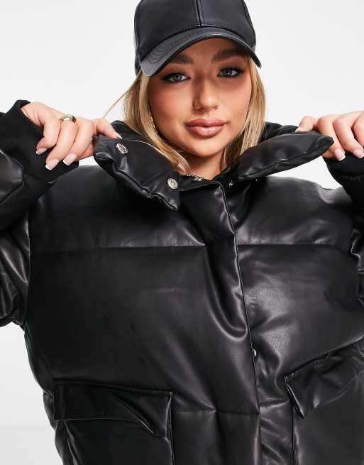 Missguided Petite Faux Leather Puffer Jacket In Black