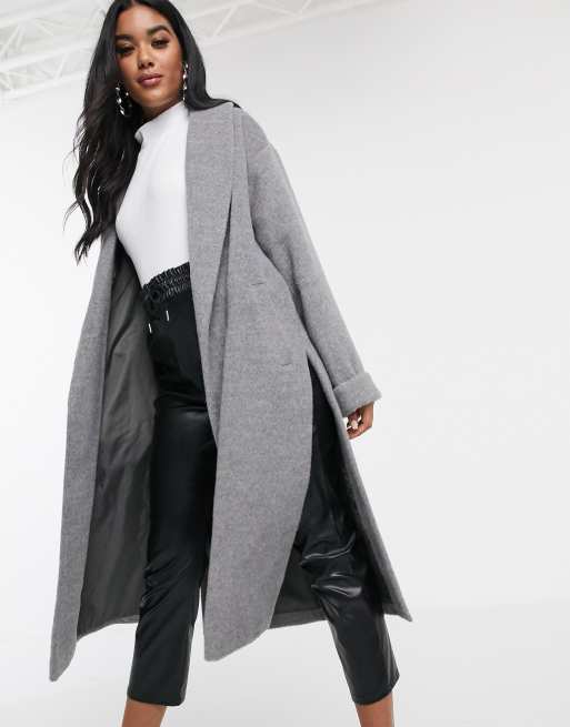 Missguided coat with shawl collar in gray ASOS Coat Fashion