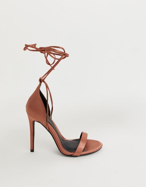 Missguided Satin Lace Up Barely There Heeled Sandals