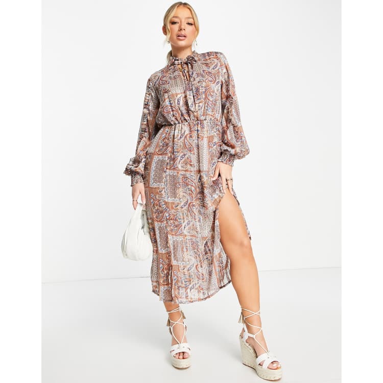 Missguided paisley dress clearance, Low Cut Paisley Dress Palma Stone clearance