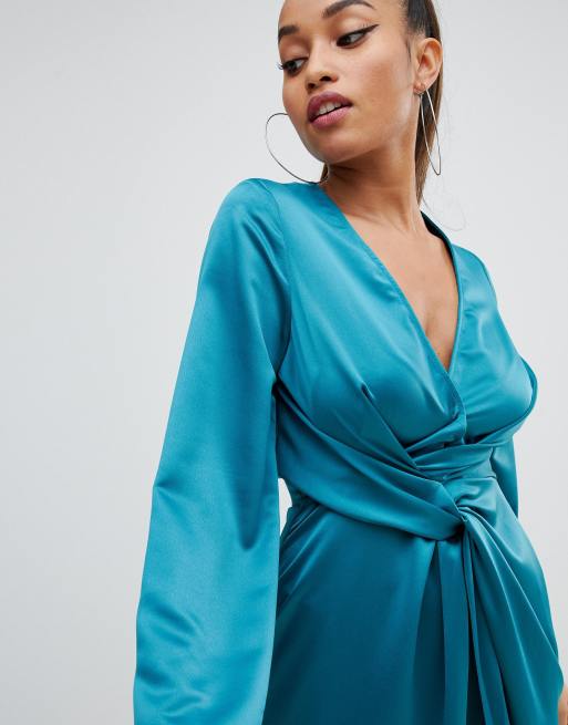 Missguided teal dress clearance, Missguided Petite satin twist maxi dress in teal clearance