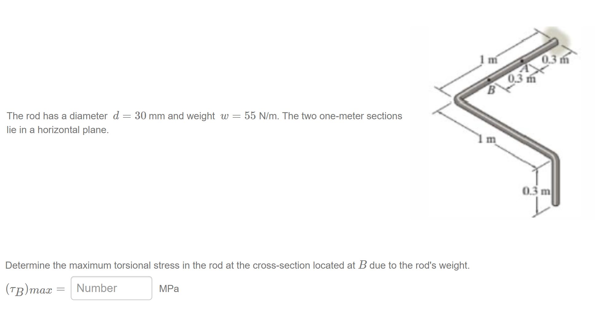 Solved The rod has a diameter d 30 mm and weight w 55 N m. Chegg