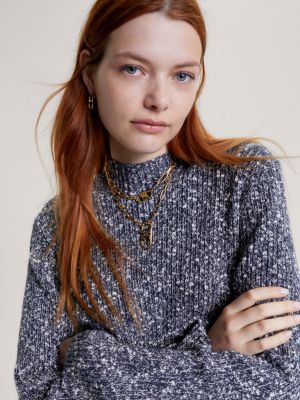 Mock Turtleneck Slim Long Sleeve Top Blue Tommy Hilfiger