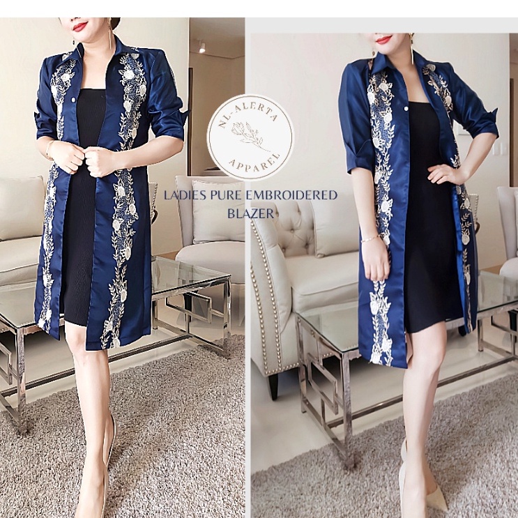 MODERN FILIPINIANA PURE EMBROIDERED LONG BLAZER DRESS FOR WOMEN