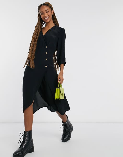 Monki buttoned wrap dress clearance, Twill Asymetric Midi Wrap Dress clearance