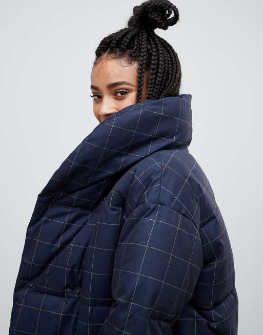 Monki longline grid puffer jacket