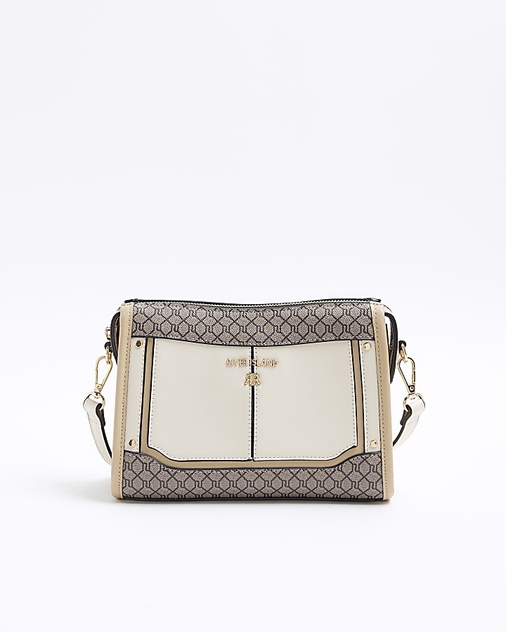 Cream RI monogram panel cross body bag