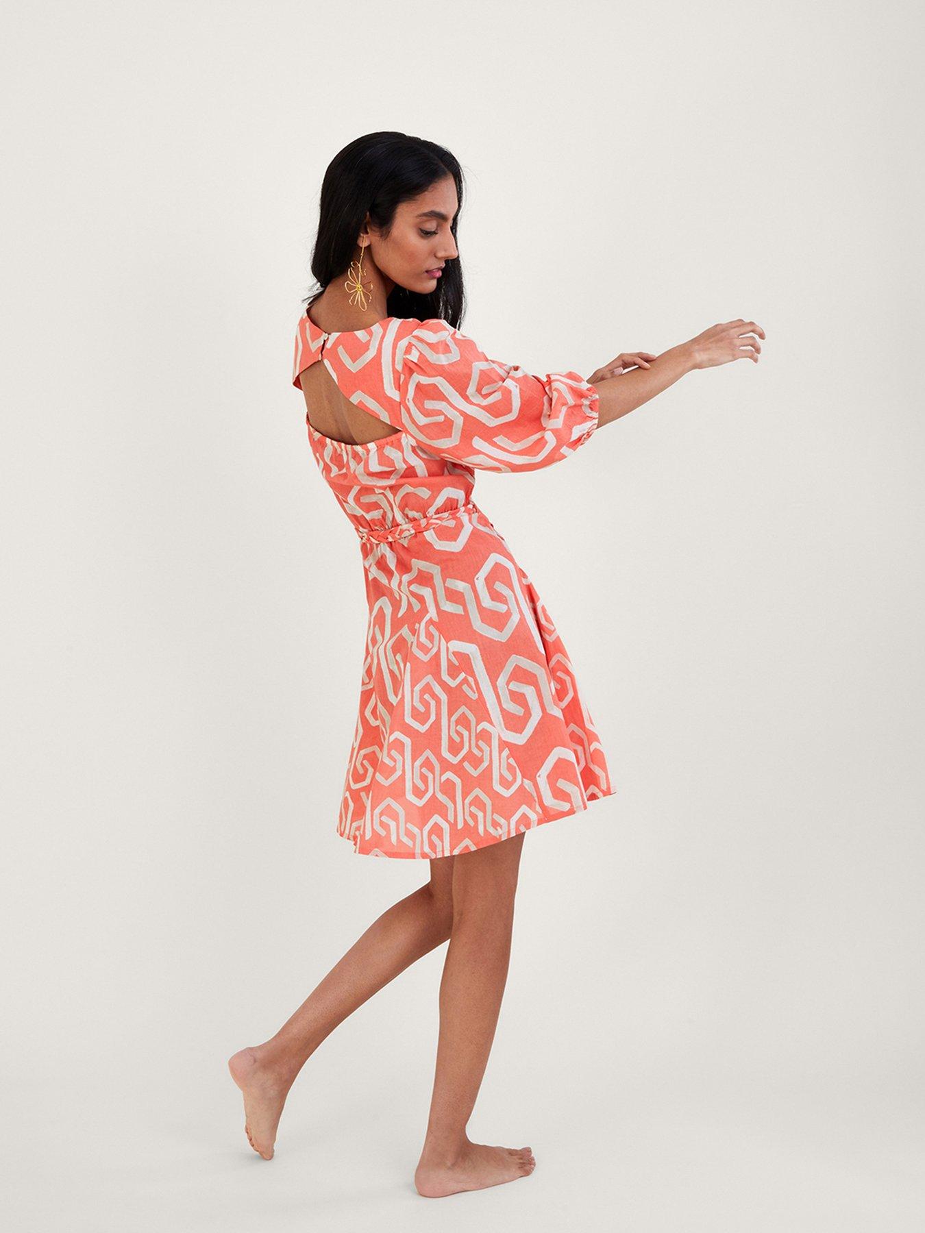 Monsoon beach wear clearance, Monsoon Geo Print Cut Out Back Short Beach Dress clearance
