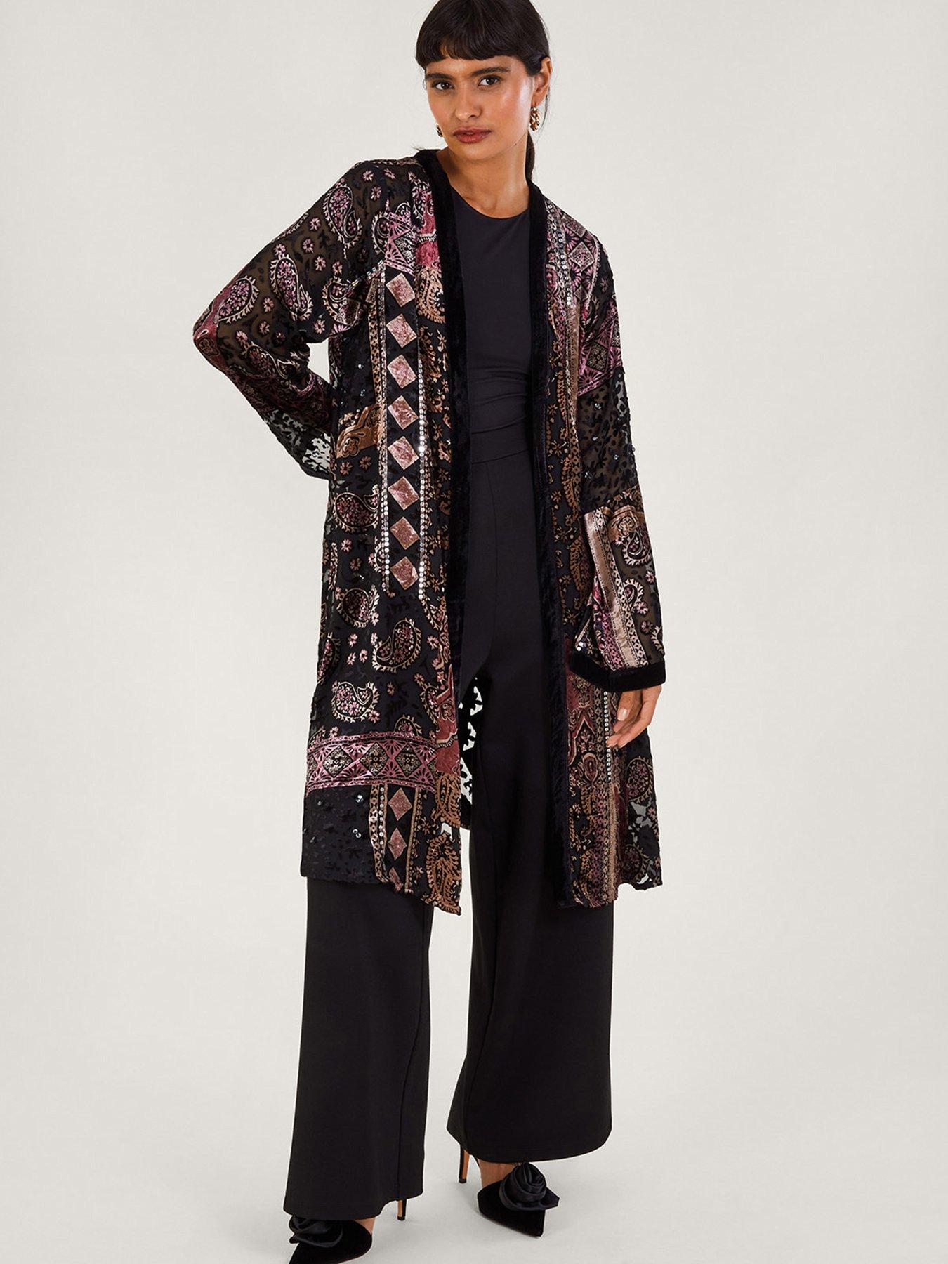 Monsoon kimono jacket clearance, Embroidered Velvet Kimono Black clearance