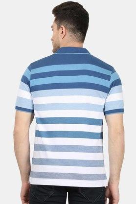 Monte Carlo Blue Cotton Regular Fit Striped Polo T Shirt