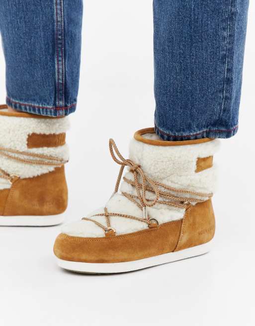 Moon Boot Far Side Low Shearling Boot in Whiskey