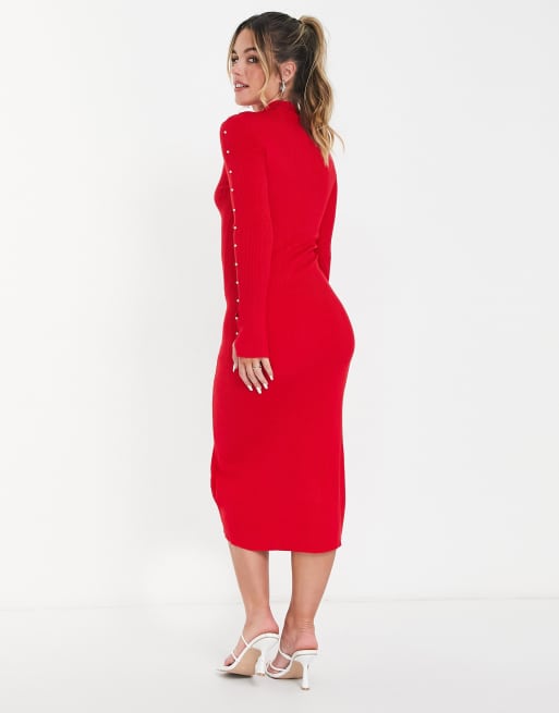 Exclusivit ASOS Morgan Robe mi longue en maille avec d tails boutonn s asym triques Rouge