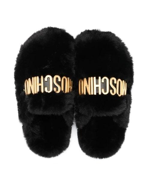 Black men s slippers with logo lettering MOSCHINO Pavidas