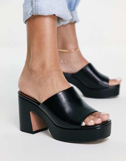 ASOS DESIGN Wide Fit Harmony mid heeled platform mules in black