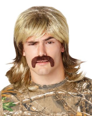Blond Mullet Wig With Mustache Spirithalloween