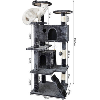 Cat Tree 155 cm Cat Tower Plush Multi Level Cat Condo Light Grey